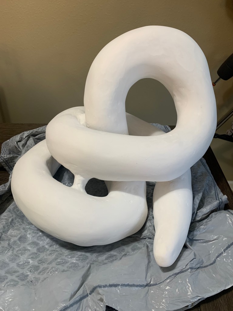 Then I wrapped the entire piece with burlap soaked in wet plaster.