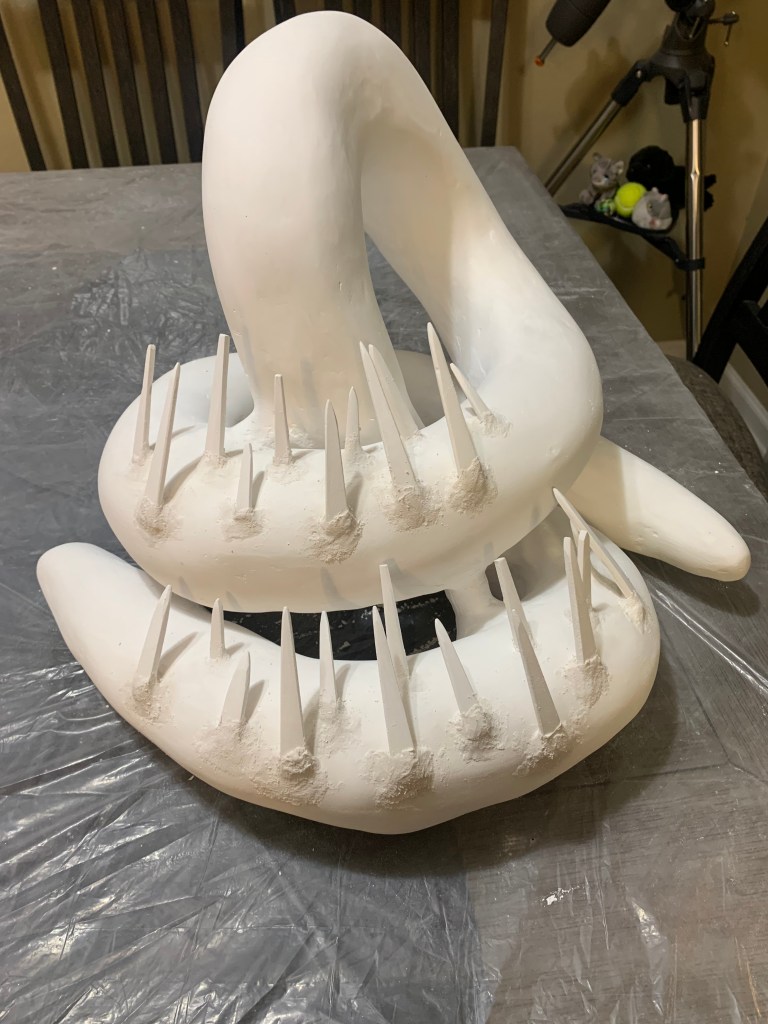 Finally, I attached the spikes, then I added more plaster onto their bases to give the piece more texture.