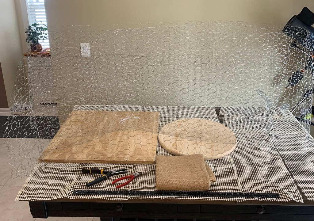 Next, I wrapped the chicken wire around foam tubing to make the frame stronger. I also added rocks and attached wire braces to make it more stable.