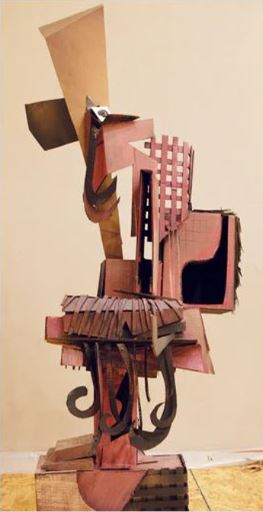 I chose Wayne White’s cardboard sculpture called FOE since it’s very abstract. The piece’s most successful aspect are the different combination of forms like the curls and the grates. I think the least successful aspect of the piece is that it looks liked it’s going to fall down into a pile. I plan to incorporate some of these abstract geometric shapes, like the boxes, into my own sculpture. (left)